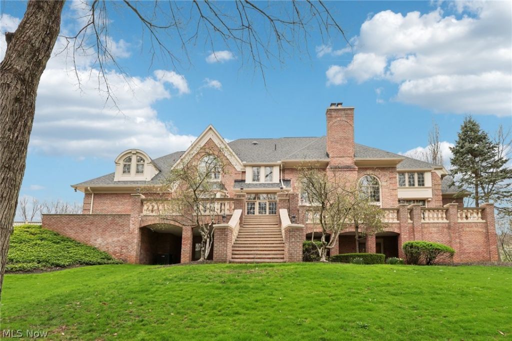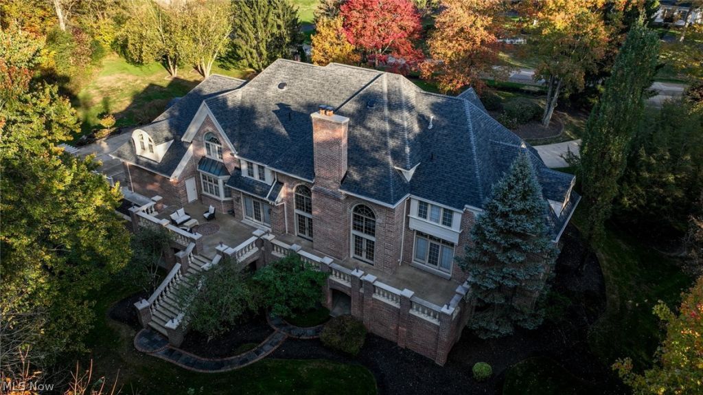Nestled on a private 3.7 acre wooded cul-de-sac, located in Top of The Hill, this Phil Franz custom-built home is impeccably maintained & showcases exceptional craftsmanship throughout. Rich wood details, decorative moldings, & refined architectural elements create a timeless elegance, while expansive windows fill every room w/ natural light. Grand foyer makes a striking impression w/ sweeping curved staircase, stately columns, & a dramatic chandelier. Great room is both warm & impressive, featuring custom built-ins, a beautifully crafted European fireplace, wet bar, & French doors that open to a spectacular stone terrace spanning the length of the home, ideal for outdoor living/entertaining. Eat-in kitchen is thoughtfully designed w/ a center island cooktop, double ovens, Sub-Zero refrigerator, breakfast bar, & a generous walk-in pantry. Well-appointed butler's pantry flows off kitchen designed for function & elegance. Gracious living room boasts beautifully crafted fireplace as focal point. A richly appointed library/study exudes character w/ beamed ceiling, built-ins, & a fireplace for focused work/quiet retreat. A second primary suite w/ walk-in closet & full bath offers flexible main-level living. A laundry room & two half baths complete the first floor. Upstairs, the primary suite is a luxurious retreat w/ a fireplace, custom his/her walk-in closet, & a spa-like bath. 2 add'l. spacious bedrooms feature private en suite baths w/granite finishes, & a large bonus room provides versatility for playroom, office, or add'l. living space. Walk-out lower level is designed for entertaining & extended in-law or multigenerational living w/ a complete kitchen & bedroom w/ walk in closet & full bath. A bar, theatre room, & expansive rec room lead out to a covered patio that offers balance for relaxation & entertaining. New roof (2022) Furnace (2024), A/C (2023), Generator (2021) Revere Schools. This home is designed to enhance everyday living w/ comfort, function, & luxury.